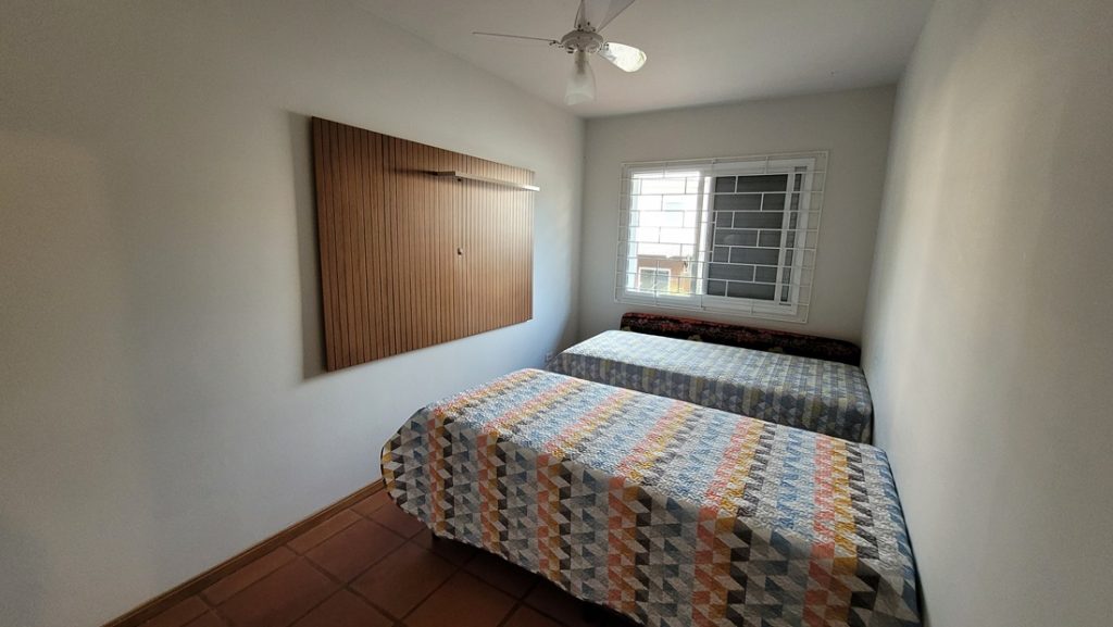 Acomoda até 6 pessoas com duas camas de casal e duas de solteiro.