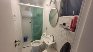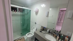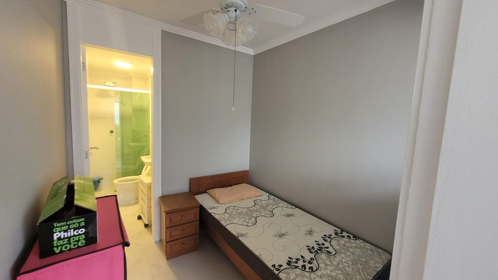 O condomínio conta com portão eletrônico para carros e pedestres, zeladoria fixa, elevador e uma vaga de garagem para carro médio (não acomoda caminhonete).