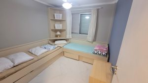Acomodações para até 7 pessoas com duas camas de casal e 3 de solteiro.
