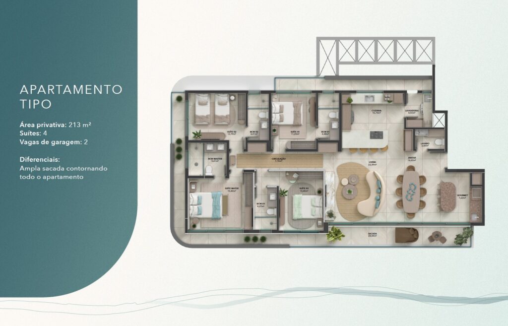 Apartamento no Edif. Bris 4 suítes na Praia central de Guaratuba